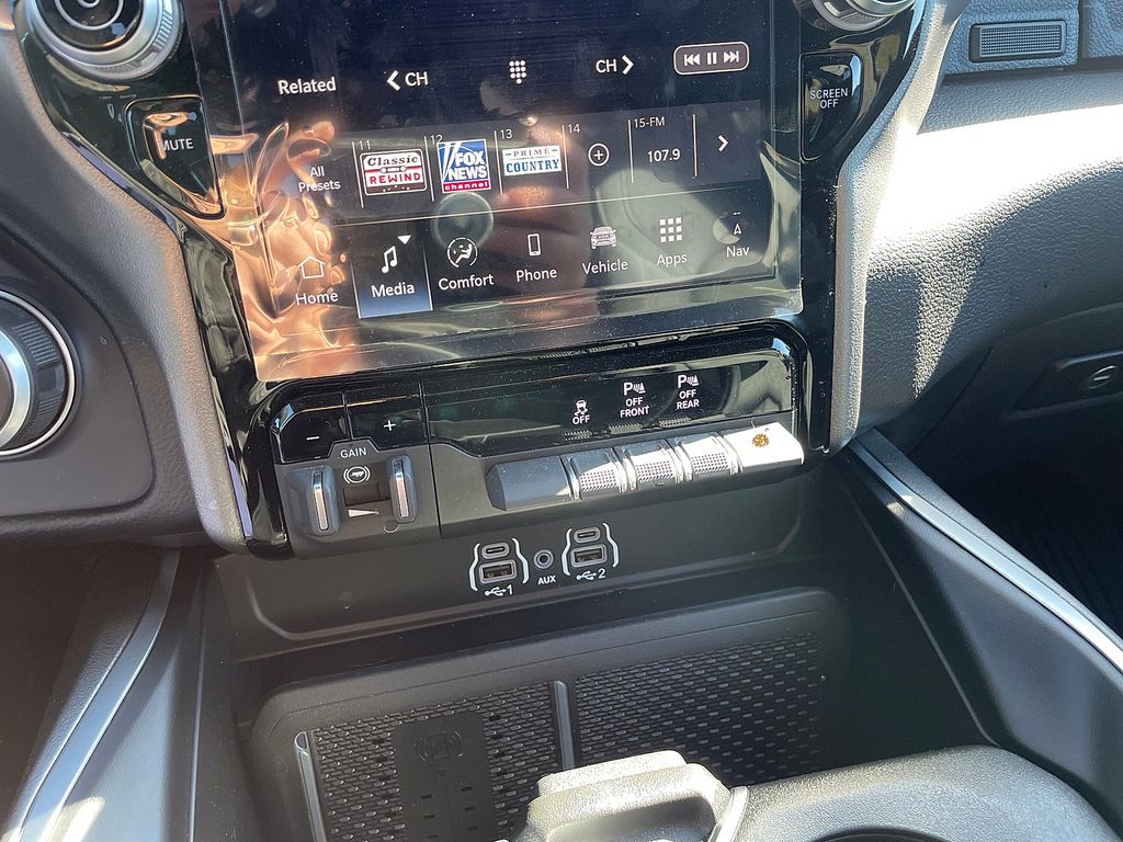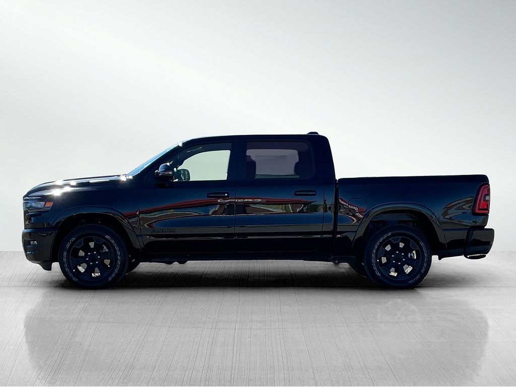 Big Horn Level 2 Equipment Group: Google Android Auto; USB Host Flip; Power Adjustable Pedals; Leather Wrapped Steering Wheel; Integrated Voice Command with Bluetooth; 12" Touchscreen Display; Glove Box Lamp; Auto Power-Folding Mirrors; 115V Auxiliary Rear Power Outlet; Media Hub with 2 Charge Only USBs; Heated Front Seats; Security Alarm; Black Premium Power Mirrors; Apple CarPlay; Premium Overhead Console; 9 Amplified Speakers with Subwoofer; Wireless Charging Pad; Remote Tailgate Release; 115V Auxiliary Power Outlet; LED Dome Lamp with On/off Switch; Universal Garage Door Opener; 2nd Row in Floor Storage Bins; Sun Visors with Illuminated Vanity Mirrors; LED Footwell Lighting; Power 2-Way Driver Lumbar Adjust; Rear Window Defroster; Rear View Auto Dim Mirror; Rear Power Sliding Window; Connectivity - US/Canada; GPS Navigation; 4G LTE Wi-Fi Hot Spot; GPS Antenna Input; Overhead LED Lamps; Exterior Mirrors with Heating Element; Auto Dim Exterior Driver Mirror; SiriusXM with 360L; Connected Travel and Traffic Services; Heated Steering Wheel; Black Exterior Mirrors; Configurable Drive Mode; 400W Inverter; HD Radio; Uconnect 5 Navigation with 12.0" Display Radio; Exterior Mirrors with Supplemental Signals; Steering Wheel Mounted Audio Controls; Exterior Mirrors Courtesy Lamps; Air Conditioning ATC with Dual Zone Control; Cluster 7.0" TFT Color Display; Power Adjust 8-Way Driver Seat; Convex Wide-Angle Exterior Mirror Insert. Night Edition: 275/55R20 OWL All Season Tires; Deluxe Cloth Bucket Seats; Accent Color Premium Power Mirrors; Exterior Mirrors with Supplemental Signals; Black Headlamp Bezels; Exterior Mirrors Courtesy Lamps; Grille Black Surround Black Mesh; Auto Power-Folding Mirrors; Exterior Mirrors with Heating Element; 20" X 9.0" Aluminum Painted Clad Wheels; Auto Dim Exterior Driver Mirror; Black Exterior Truck Badging; Anti-Spin Differential Rear Axle; Accent Color Door Handles; Accent Color Tailgate Handle; Black Interior Accents; Dual Exhaust with Black Tips; Body Color Front Bumper; Convex Wide-Angle Exterior Mirror Insert; Body Color Rear Bumper with Step Pads; Black Tail Lamp Bezels; RAM Grille Badge - Black; Black Painted Exterior Mirrors Caps. Bed Utility Group: MOPAR Spray in Bedliner; MOPAR Deployable Bed Step; MOPAR 4 Adjustable Cargo Tie-Down Hooks; Pick-Up Box Lighting; Exterior 115V AC Outlet. Quick Order Package 21Z Big Horn. Dual-Pane Panoramic Sunroof. 9 Amplified Speakers with Subwoofer. Deluxe Cloth Bucket Seats. Anti-Spin Differential Rear Axle. 33 Gallon Fuel Tank. Trailer Brake Control. Diamond Black Crystal PC. MOPAR Front and Rear Rubber Floor Mats. 3.92 Rear Axle Ratio. Rear Underseat Compartment Storage. **Equipment listed is based on original vehicle build and subject to change. Please confirm the accuracy of the included equipment by calling the dealer prior to purchase.**