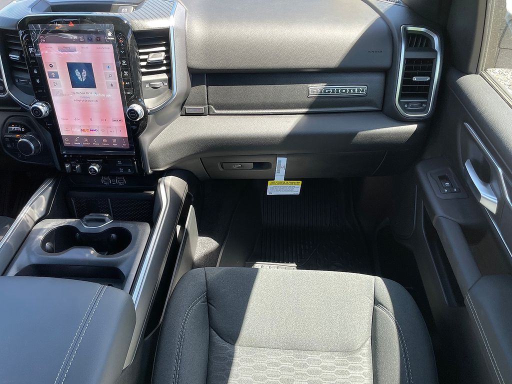 Big Horn Level 2 Equipment Group: Google Android Auto; USB Host Flip; Power Adjustable Pedals; Leather Wrapped Steering Wheel; Integrated Voice Command with Bluetooth; 12" Touchscreen Display; Glove Box Lamp; Auto Power-Folding Mirrors; 115V Auxiliary Rear Power Outlet; Media Hub with 2 Charge Only USBs; Heated Front Seats; Security Alarm; Black Premium Power Mirrors; Apple CarPlay; Premium Overhead Console; 9 Amplified Speakers with Subwoofer; Wireless Charging Pad; Remote Tailgate Release; 115V Auxiliary Power Outlet; LED Dome Lamp with On/off Switch; Universal Garage Door Opener; 2nd Row in Floor Storage Bins; Sun Visors with Illuminated Vanity Mirrors; LED Footwell Lighting; Power 2-Way Driver Lumbar Adjust; Rear Window Defroster; Rear View Auto Dim Mirror; Rear Power Sliding Window; Connectivity - US/Canada; GPS Navigation; 4G LTE Wi-Fi Hot Spot; GPS Antenna Input; Overhead LED Lamps; Exterior Mirrors with Heating Element; Auto Dim Exterior Driver Mirror; SiriusXM with 360L; Connected Travel and Traffic Services; Heated Steering Wheel; Black Exterior Mirrors; Configurable Drive Mode; 400W Inverter; HD Radio; Uconnect 5 Navigation with 12.0" Display Radio; Exterior Mirrors with Supplemental Signals; Steering Wheel Mounted Audio Controls; Exterior Mirrors Courtesy Lamps; Air Conditioning ATC with Dual Zone Control; Cluster 7.0" TFT Color Display; Power Adjust 8-Way Driver Seat; Convex Wide-Angle Exterior Mirror Insert. Night Edition: 275/55R20 OWL All Season Tires; Deluxe Cloth Bucket Seats; Accent Color Premium Power Mirrors; Exterior Mirrors with Supplemental Signals; Black Headlamp Bezels; Exterior Mirrors Courtesy Lamps; Grille Black Surround Black Mesh; Auto Power-Folding Mirrors; Exterior Mirrors with Heating Element; 20" X 9.0" Aluminum Painted Clad Wheels; Auto Dim Exterior Driver Mirror; Black Exterior Truck Badging; Anti-Spin Differential Rear Axle; Accent Color Door Handles; Accent Color Tailgate Handle; Black Interior Accents; Dual Exhaust with Black Tips; Body Color Front Bumper; Convex Wide-Angle Exterior Mirror Insert; Body Color Rear Bumper with Step Pads; Black Tail Lamp Bezels; RAM Grille Badge - Black; Black Painted Exterior Mirrors Caps. Bed Utility Group: MOPAR Spray in Bedliner; MOPAR Deployable Bed Step; MOPAR 4 Adjustable Cargo Tie-Down Hooks; Pick-Up Box Lighting; Exterior 115V AC Outlet. Quick Order Package 21Z Big Horn. Trailer Tow Group: Exterior Mirrors with Supplemental Signals; Trailer Reverse Steering Control; Exterior Mirrors Courtesy Lamps; Manual Folding Exterior Mirrors; Trailer Tire Pressure Monitoring System; Trailer Tow Mirrors; Trailer Light Check; Exterior Mirrors with Heating Element; Trailer Brake Control; Accent Color Tailgate Handle; Mirror Clearance/running Lights; Manuarl Telescoping Mirrors; Black Exterior Mirrors; Black Trailer Tow Power Mirrors; Power-Adjustable Convex Aux Mirrors. Protection Group: Steering Gear Skid Plate; Tow Hooks; Transfer Case Skid Plate; Fuel Tank Skid Plate. 9 Amplified Speakers with Subwoofer. Deluxe Cloth Bucket Seats. Anti-Spin Differential Rear Axle. Trailer Brake Control. Cluster 12" TFT Color Display. MOPAR Front and Rear Rubber Floor Mats. **Equipment listed is based on original vehicle build and subject to change. Please confirm the accuracy of the included equipment by calling the dealer prior to purchase.**