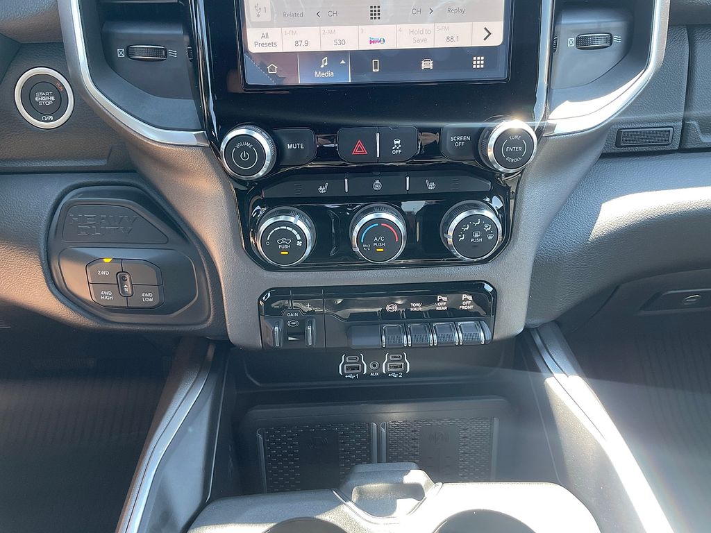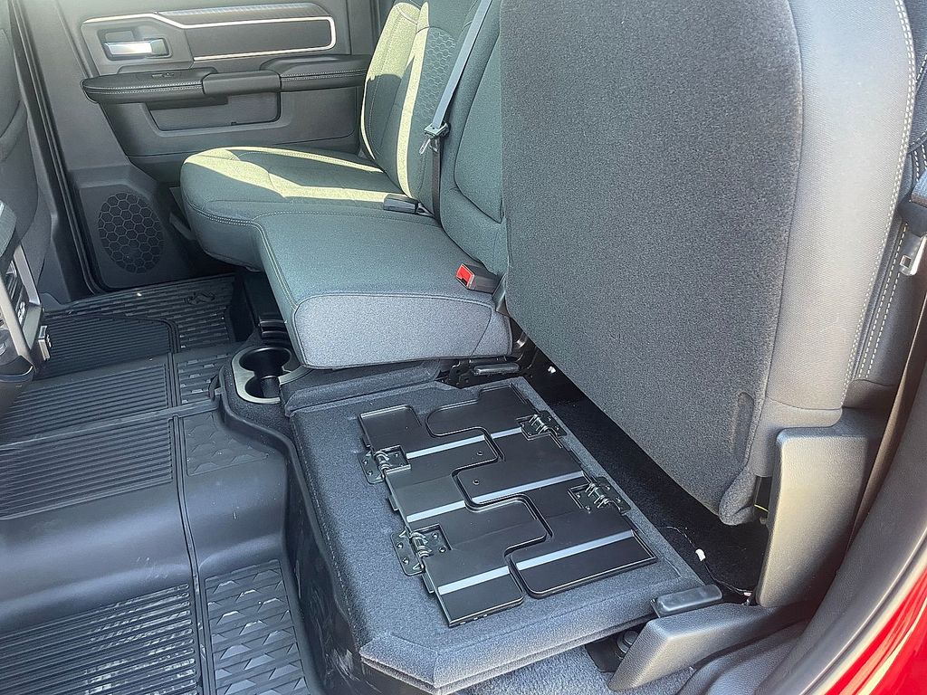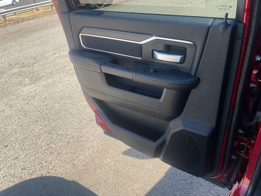 Quick Order Package 24Z Big Horn. Big Horn Level 2 Equipment Group: Blind Spot and Cross Path Detection; Rear View Auto Dim Mirror; Power Adjustable Pedals; Rear Power Sliding Window; Rear Dome with On/off Switch Lamp; Glove Box Lamp; Auto Power-Folding Mirrors; Footwell Courtesy Lamp; Exterior Mirrors with Heating Element; Heated Front Seats; Mirror Running Lights; Heated Steering Wheel; Foam Bottle Insert (door Trim Panel); Black Exterior Mirrors; Exterior 115V AC Outlet; Dampened Tailgate; Premium Cloth Bucket Seats; Big Horn Instrument Panel Badge; Power-Adjustable Convex Aux Mirrors; Forward and Reverse Utility Lights; Locking Lower Glove Box; Remote Start System; 400W Inverter; 9 Alpine Speakers with Subwoofer; Power Heated Fold Telescopic Mirrors; Dual Wireless Charging Pad; Exterior Mirrors with Supplemental Signals; Steering Wheel Mounted Audio Controls; Exterior Mirrors Courtesy Lamps; Dual Glove Boxes; 115-Volt Auxiliary Front Power Outlet; Cluster 7.0" TFT Color Display; Universal Garage Door Opener; Power Adjust Mirrors; Luxury Steering Wheel; 2nd Row in Floor Storage Bins; Power Telescoping Mirrors; Sun Visors with Illuminated Vanity Mirrors. Cold Weather Group: Engine Block Heater; MOPAR Winter Front Grille Cover. Bed Convenience Group: MOPAR Spray in Bedliner; LED Bed Lighting. Blind Spot and Cross Path Detection. 5th Wheel/gooseneck Towing Prep Group. Premium Cloth Bucket Seats. Remote Start System. Molten Red Pearlcoat. MOPAR Front and Rear Rubber Floor Mats. Rear Wheelhouse Liners. Power 2-Way Driver Lumbar Adjust. Clearance Lamps. Transfer Case Skid Plate Shield. **Equipment listed is based on original vehicle build and subject to change. Please confirm the accuracy of the included equipment by calling the dealer prior to purchase.**