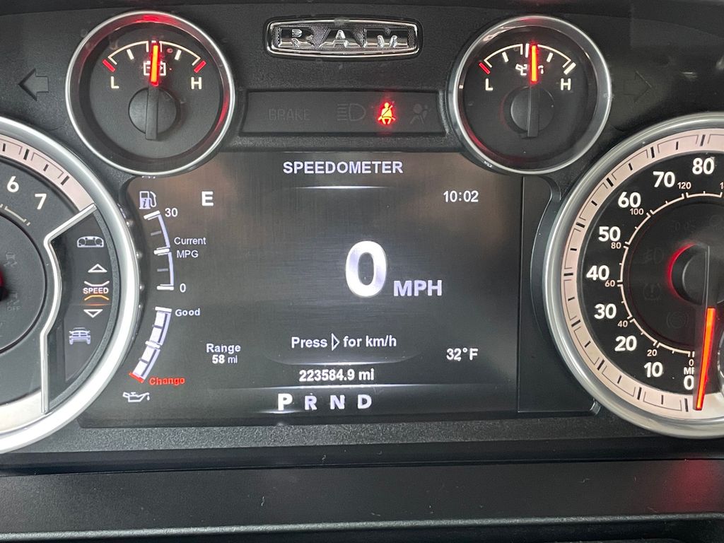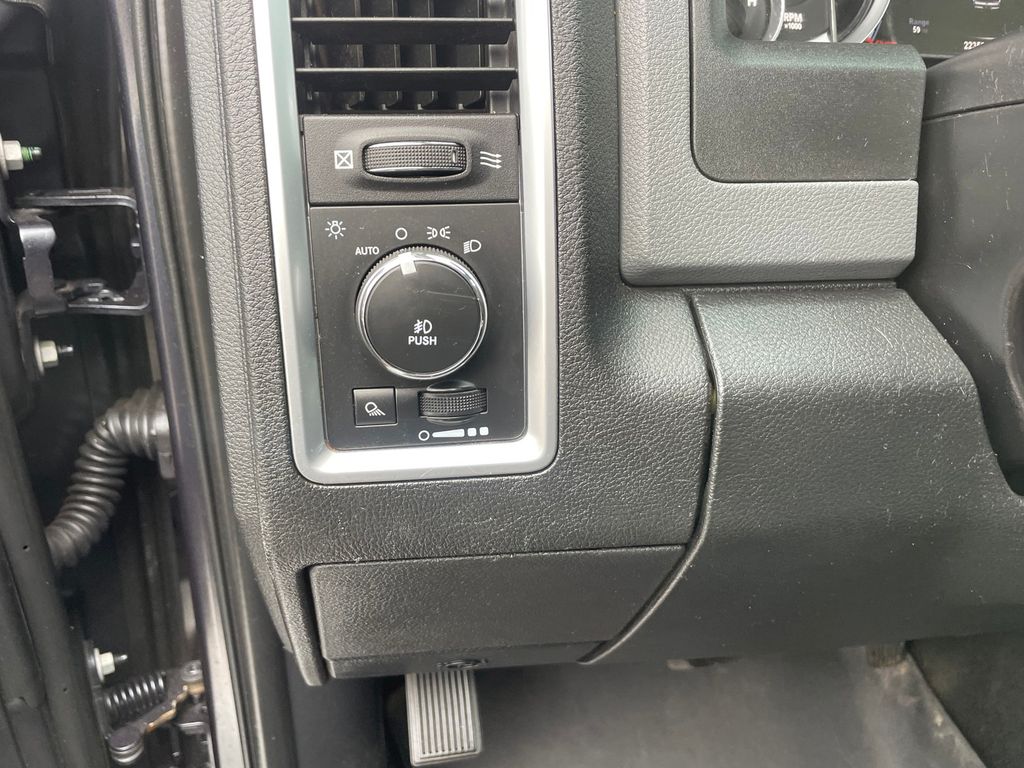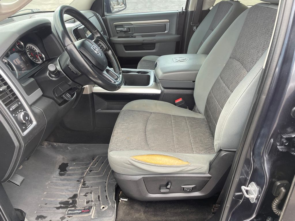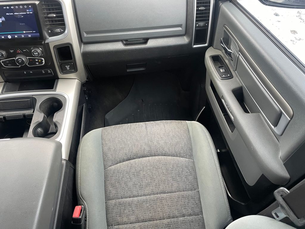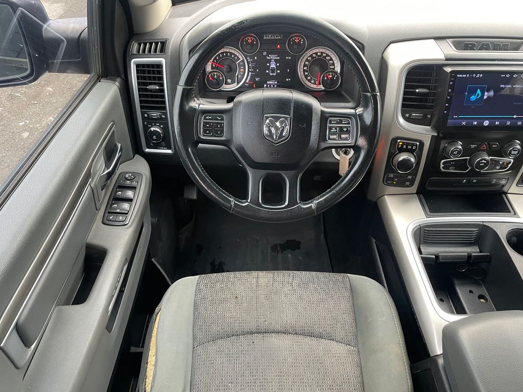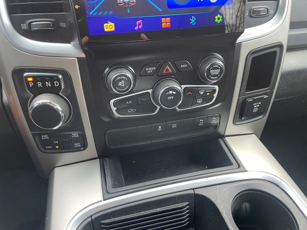 with XM/Sirus Satellite Radio you are no longer restricted by poor quality local radio stations while driving this Ram 1500. Anywhere on the planet, you will have hundreds of digital stations to choose from. See what's behind you with the back up camera on it. The installed navigation system will keep you on the right path. The state of the art park assist system will guide you easily into any spot. Never get into a cold vehicle again with the remote start feature on the vehicle. The Ram 1500 features a hands-free Bluetooth phone system. This model projects refinement with a racy metallic gray exterior. This model has a V8, 5.7L high output engine. When you encounter slick or muddy roads, you can engage the four wheel drive on the Ram 1500 and drive with confidence. This vehicle is equipped with a gasoline engine. The Electronic Stability Control will keep you on your intended path.